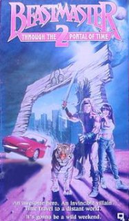 It's about time travel apparently. Although since the original Beastmaster was set in a fantasy world as far as I remember, time travel should really be dimension travel. Typically marketing execs thought by having Dar transported to the modern age they wouldn't have to create any expensive sets and could just have him running round the streets near the studio. The lack of budget compared to the original really shows at times, they couldn't even afford the black paint this time so the tiger is it's usual undyed colour. Anyway, like all fantasy films involving time/dimension travel (Masters of the Universe, Highlander 2 etc) it's awful.