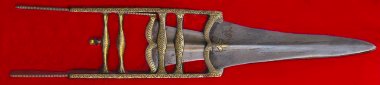 This piece shows the evolution of the katar. The blade has grown longer (prossibly due to