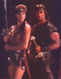 There are a lot of things that "Red Sonja" has going for it, but it's let down in a few critical areas. Most of the sets are awesome, the temple at the start, ruined Haplok and Gedren's palace are brilliantly designed and stunningly realised. The landscape is a joy to watch whether it be the rolling hills, or the skeleton bridge that leads the way into Burkebane, there's enough eye-candy to help get you into the spirit of the film. The plot itself is fast paced and relies on action all the way through, as you would expect from this sort of film. The dialogue is pretty much straight to the point, which suits the delivery style of most of the actors involved. The fight scenes are well choreographed, with Arnie and Sandahl using the training they received for Conan the Barbarian and Nielsen putting in a competent performance too. The musical score, by the legendary Morricone is nothing short of spectacular, although it is often over looked in his list of credits.